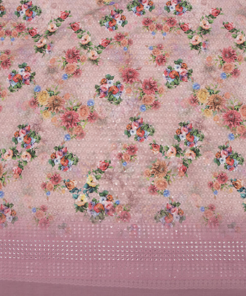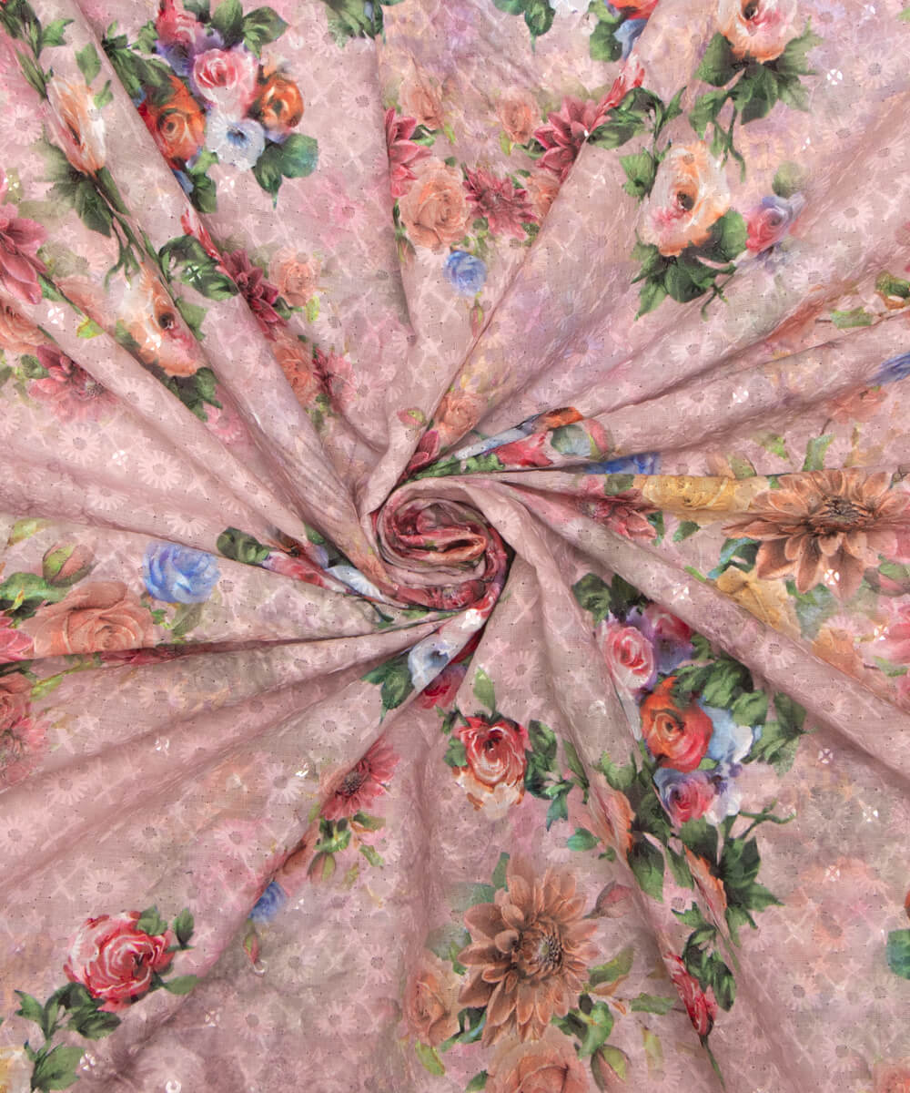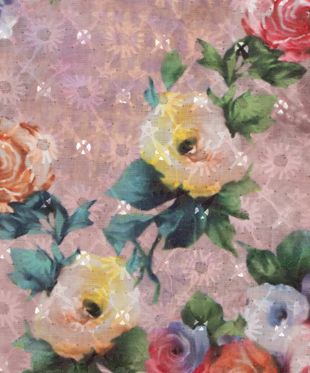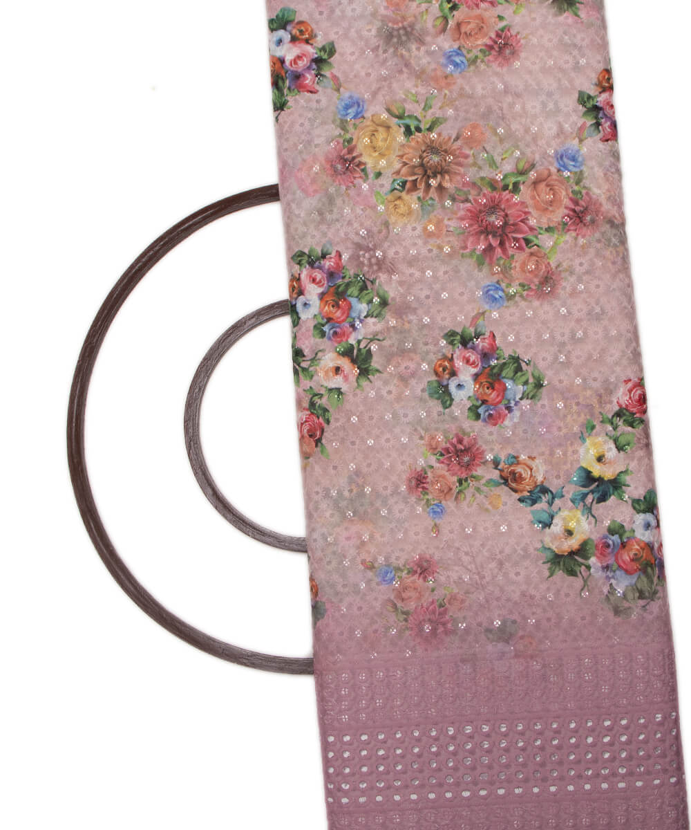 Lilac Colour Cotton ChikanKari Digital Floral Print Embroidery Fabric