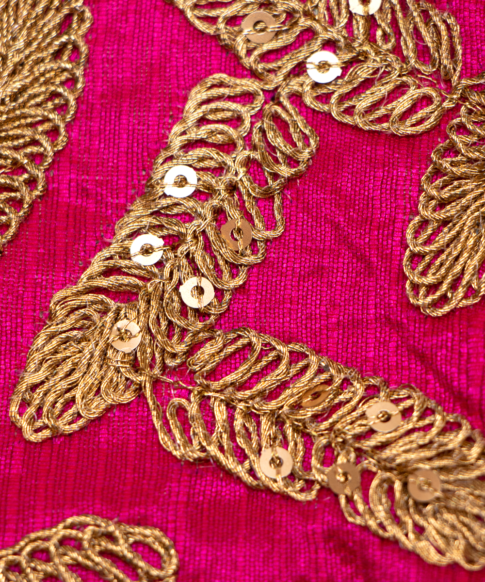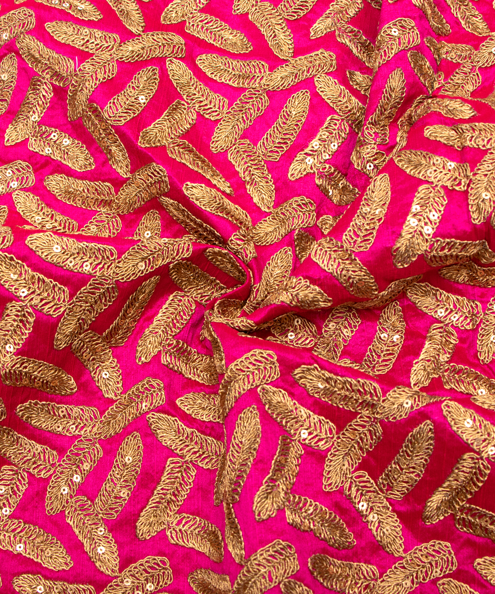 Magenta Raw Silk Embroidery Fabric