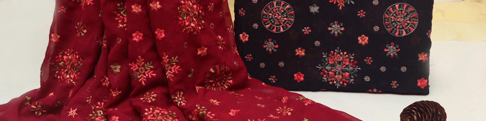 Georgette Embroidery Fabric is known for its flowy and light weight texture. The Fabric includes different types for work as thread work, zari work, sequin work, mirror work and many more. Georgette Embroidery is widely used by designers, boutique owners to make designer dresses for various purposes.