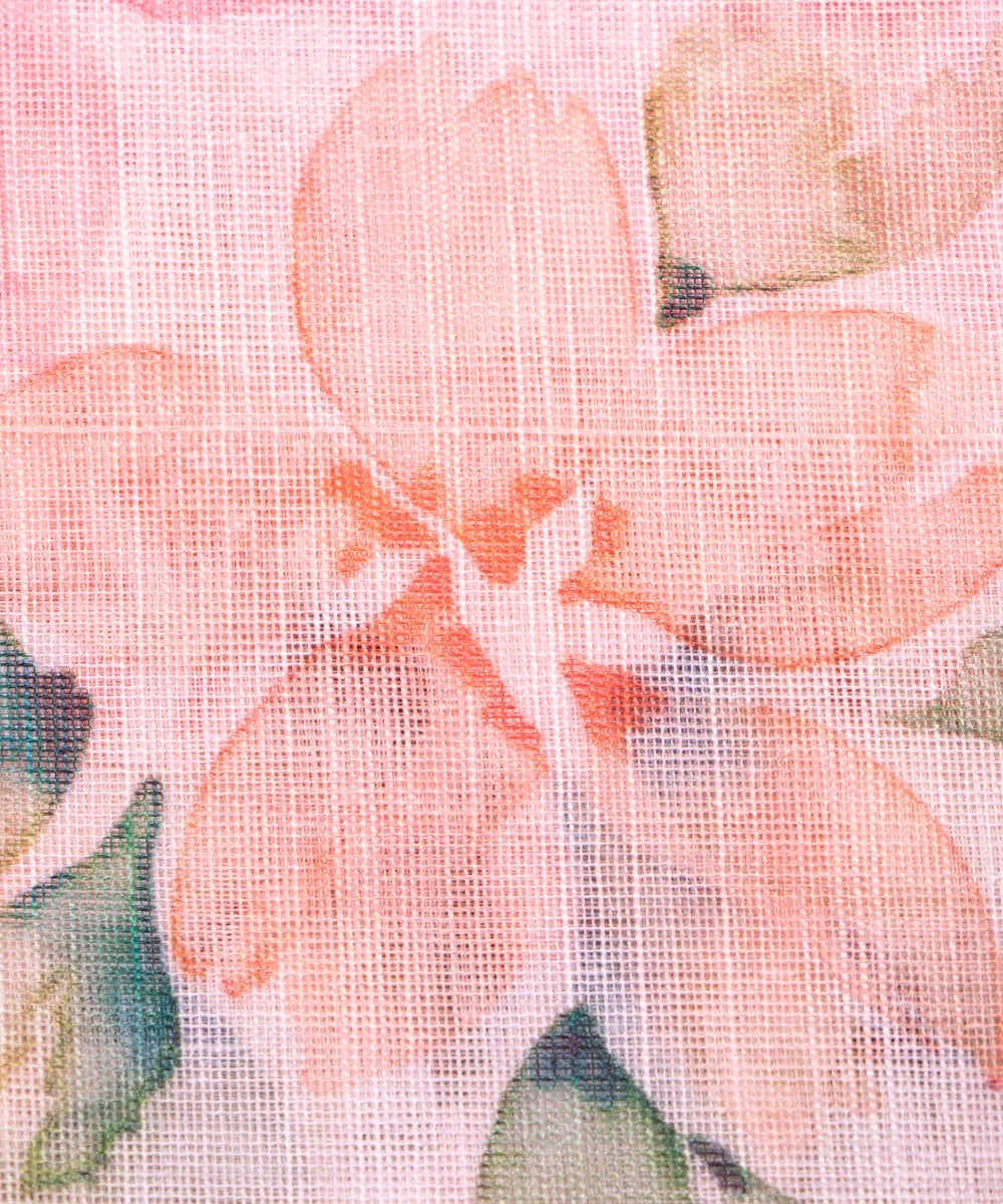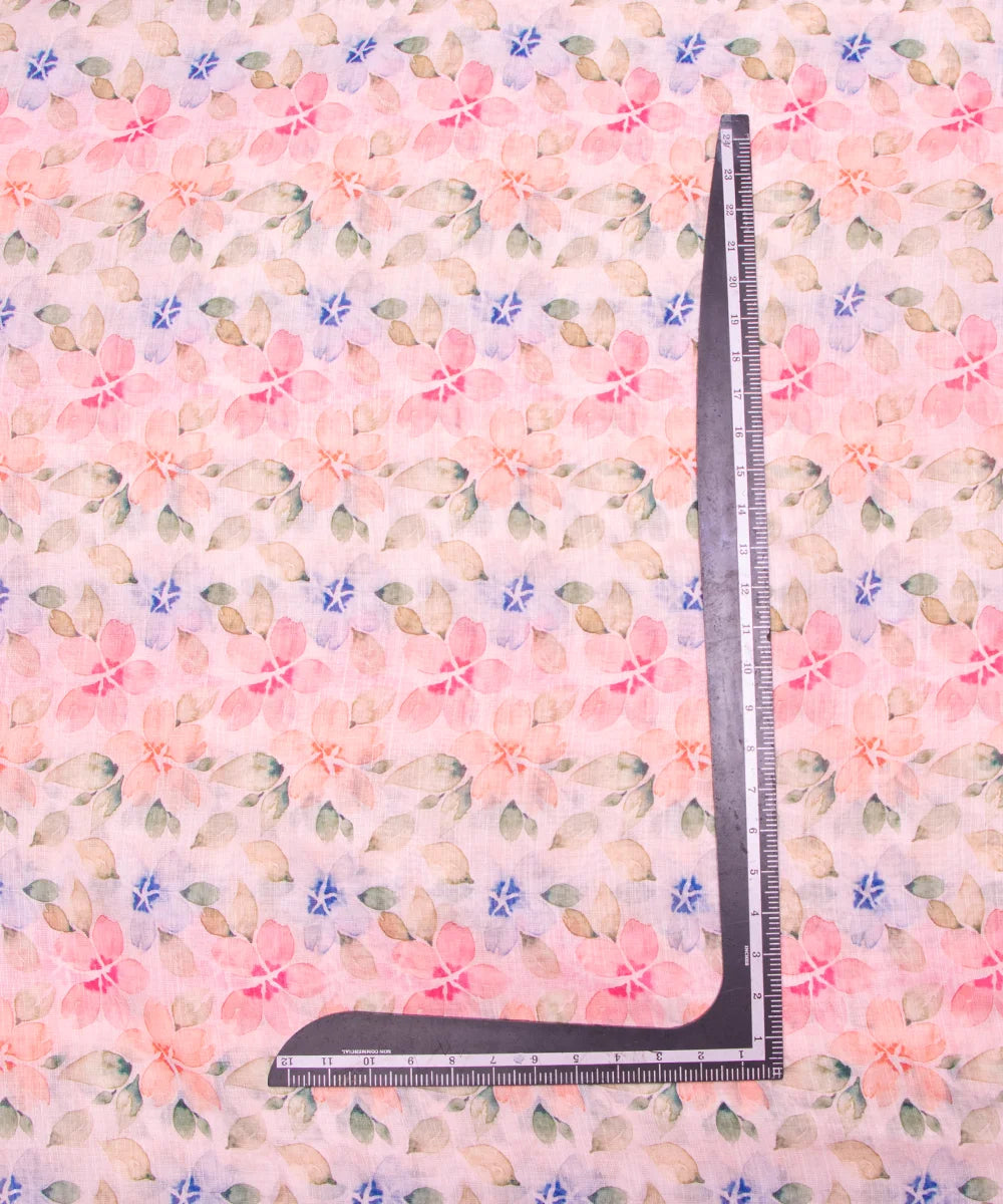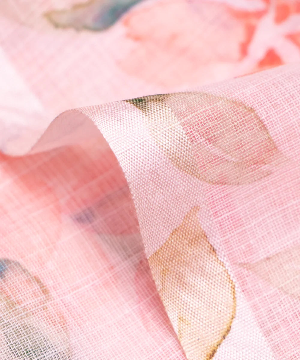Pastel Pink Floral Printed Cotton Linen Fabric
