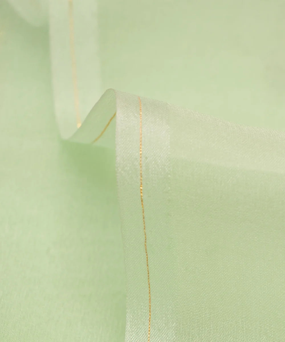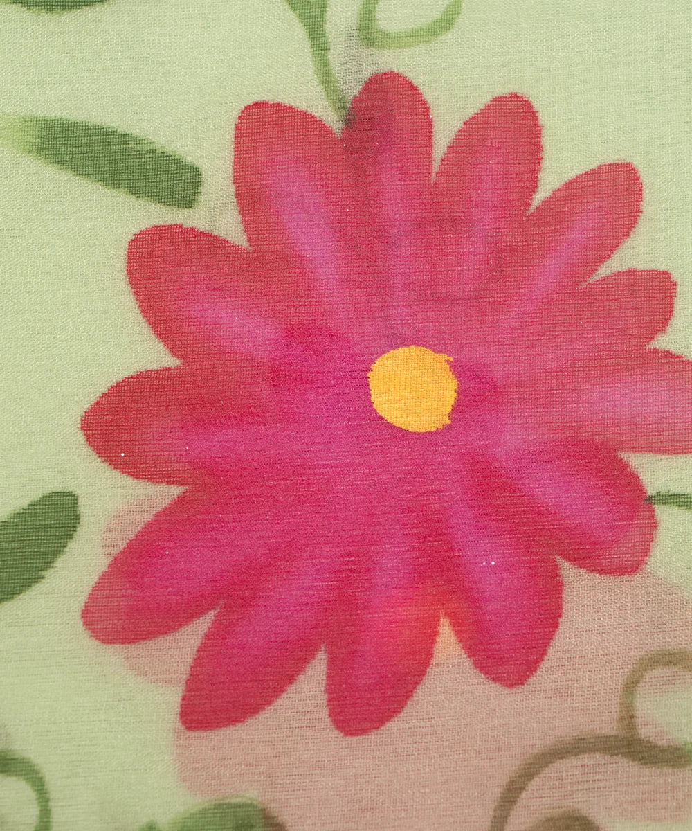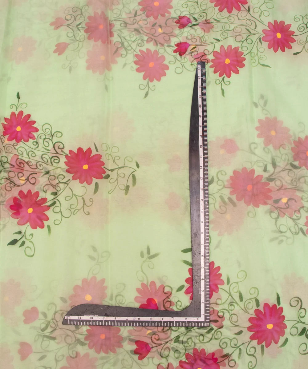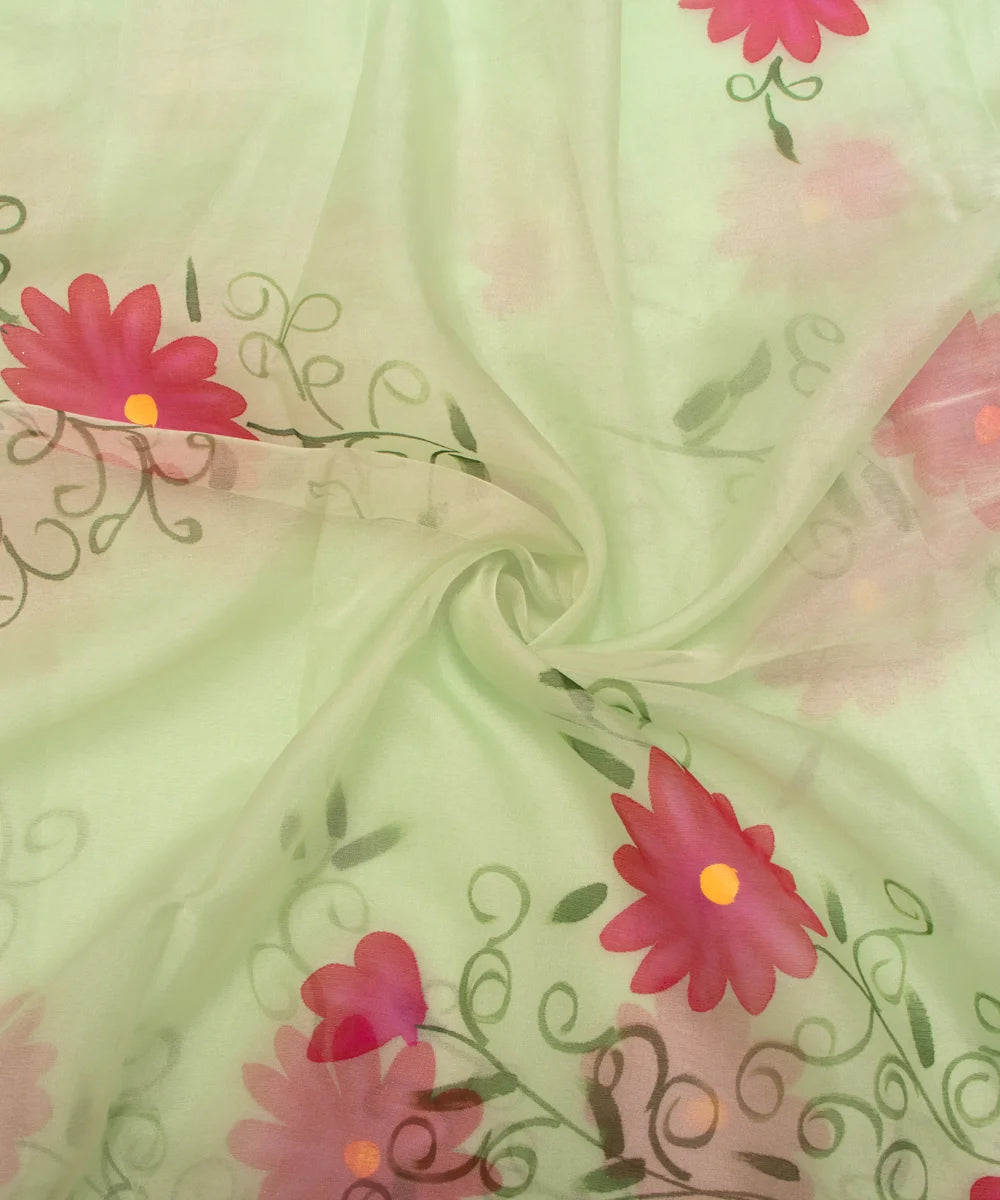 Elaichi Green Floral Organza Hand Paint Fabric