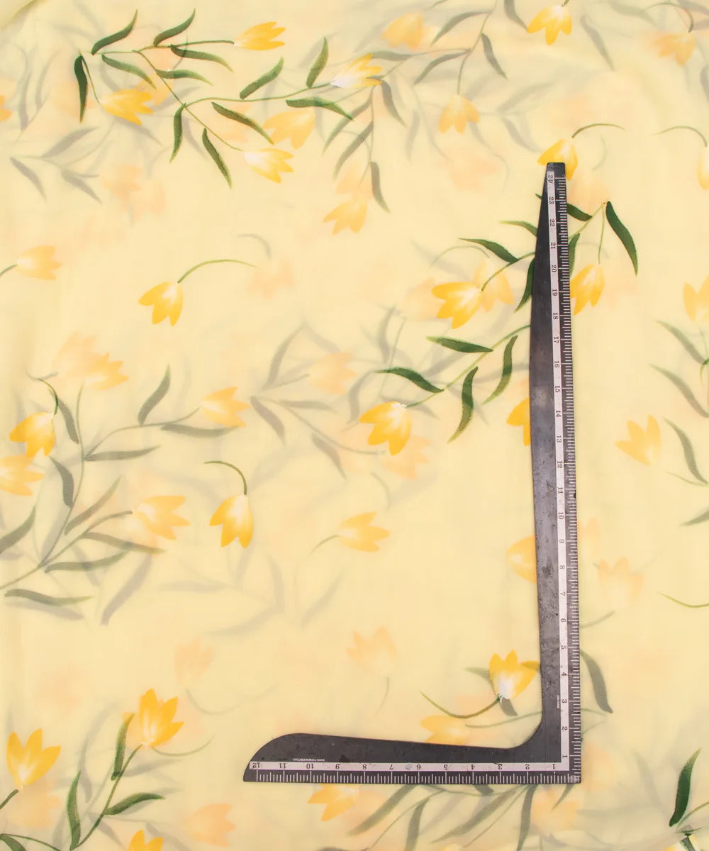 Off White Floral Georgette Hand Paint Fabric