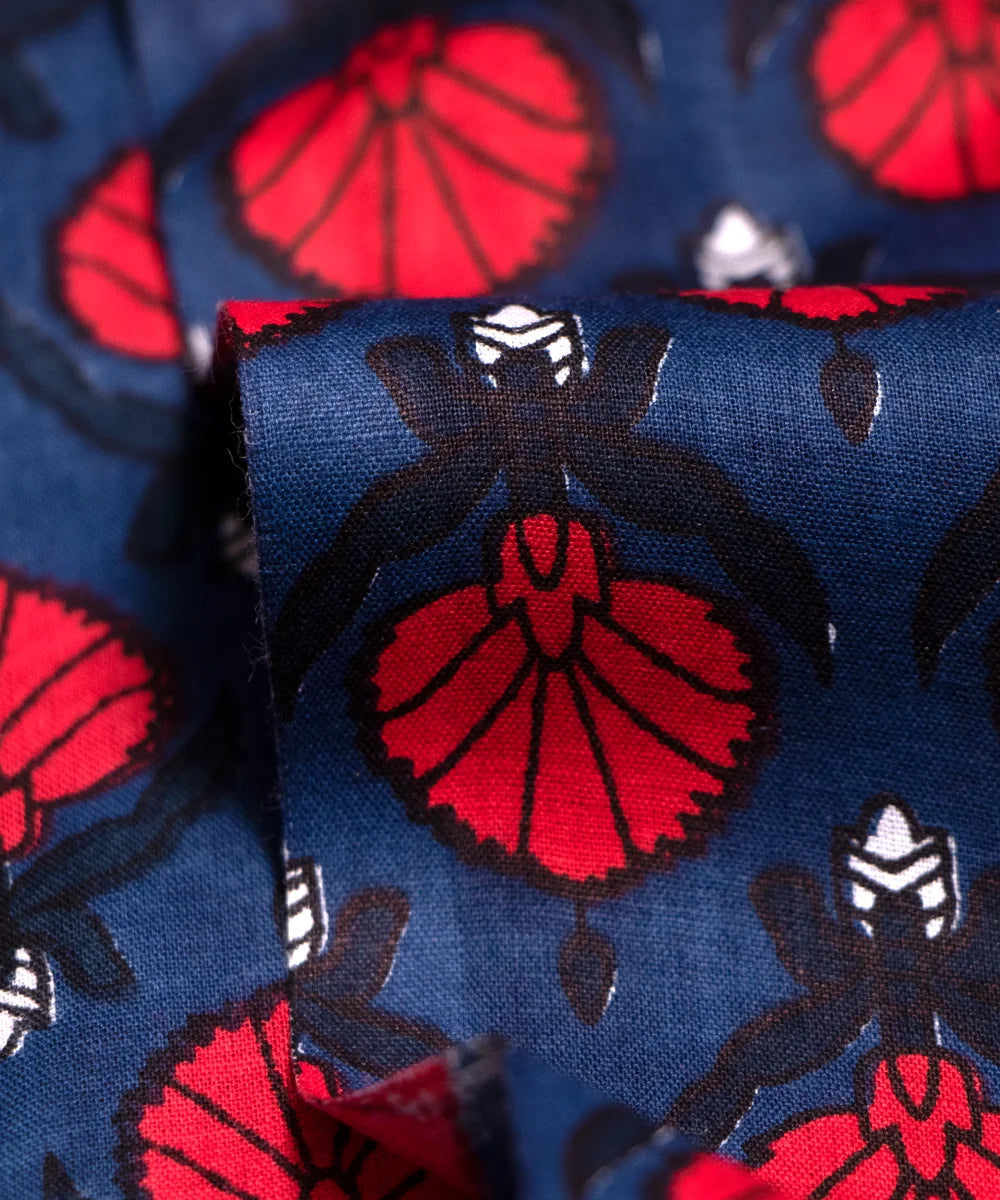 Dark Blue Floral Printed Cotton Fabric