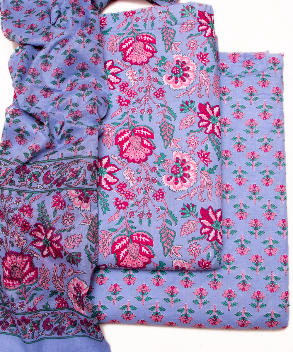 Light Blue Printed Cotton Suit Set