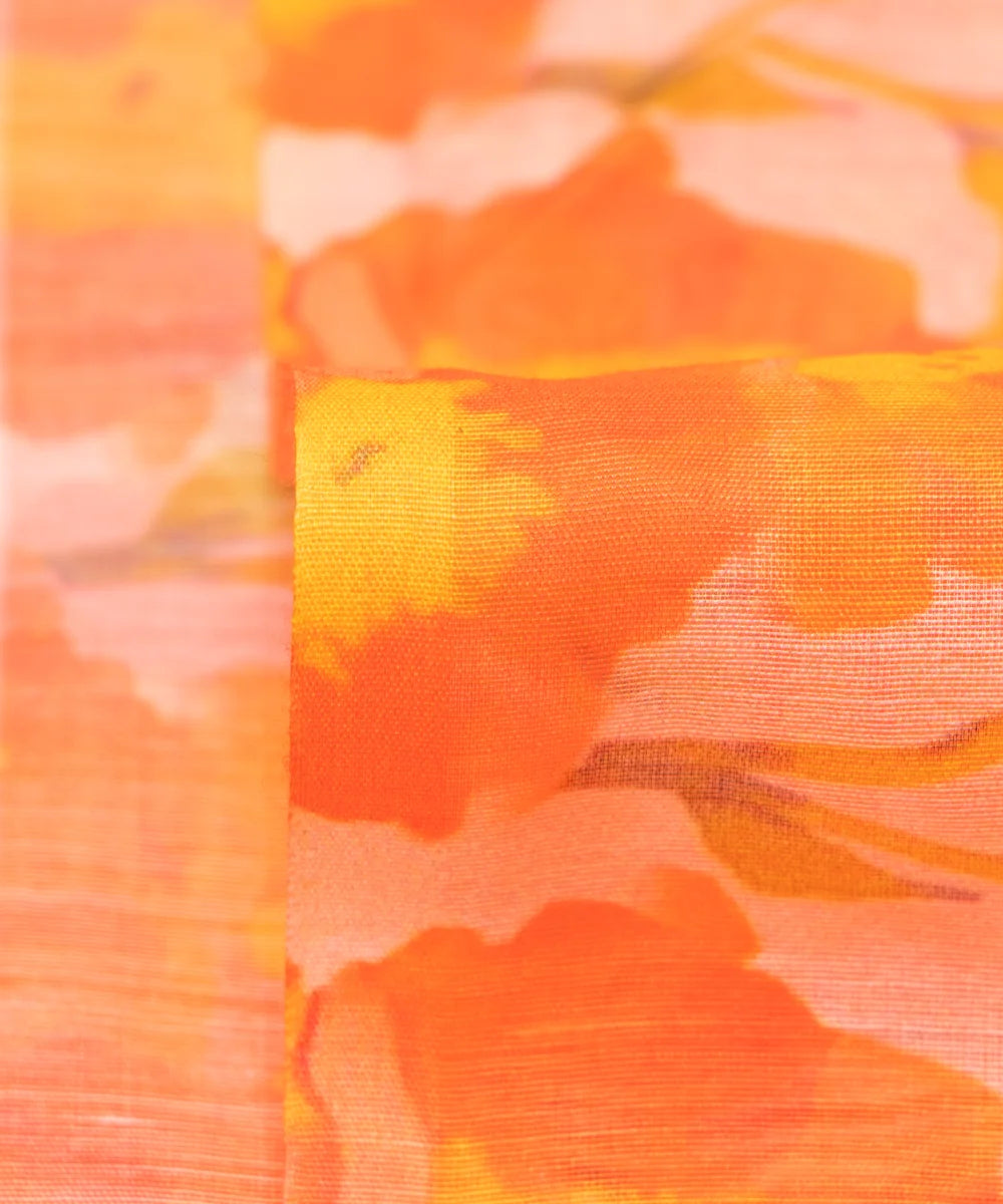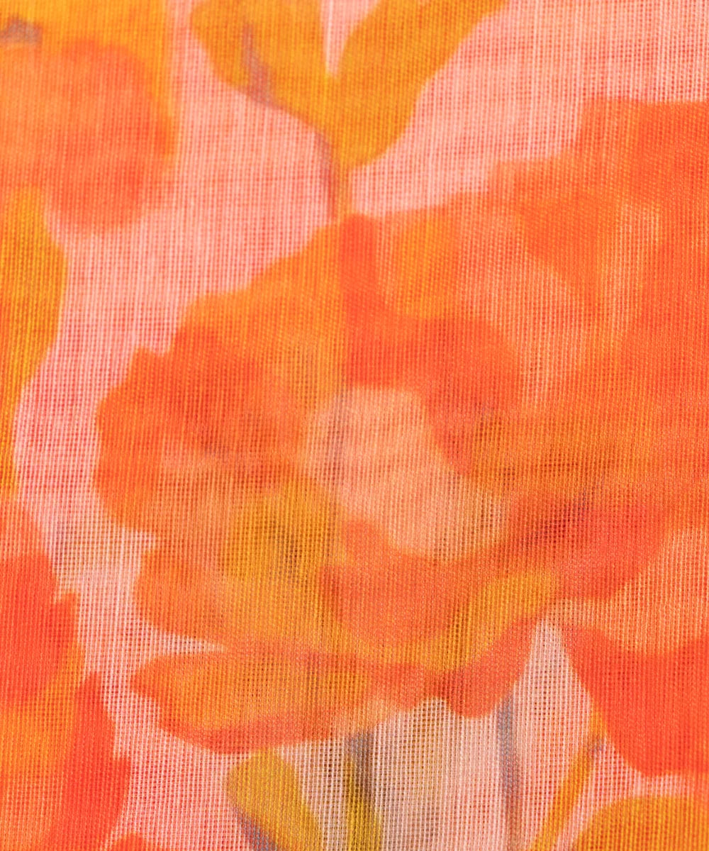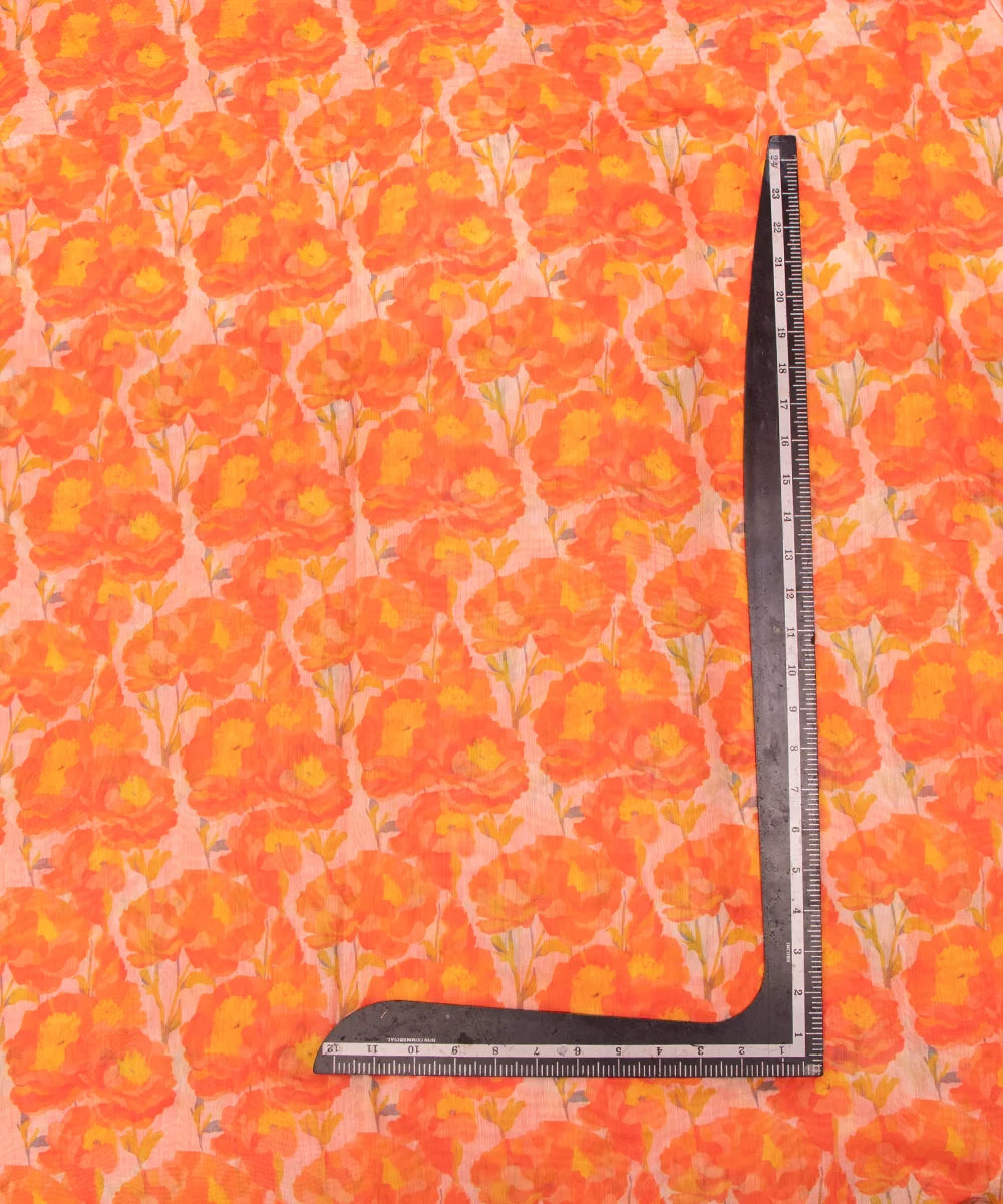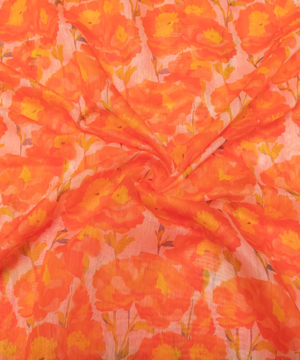 Orange Floral Print Mul Chanderi Fabric