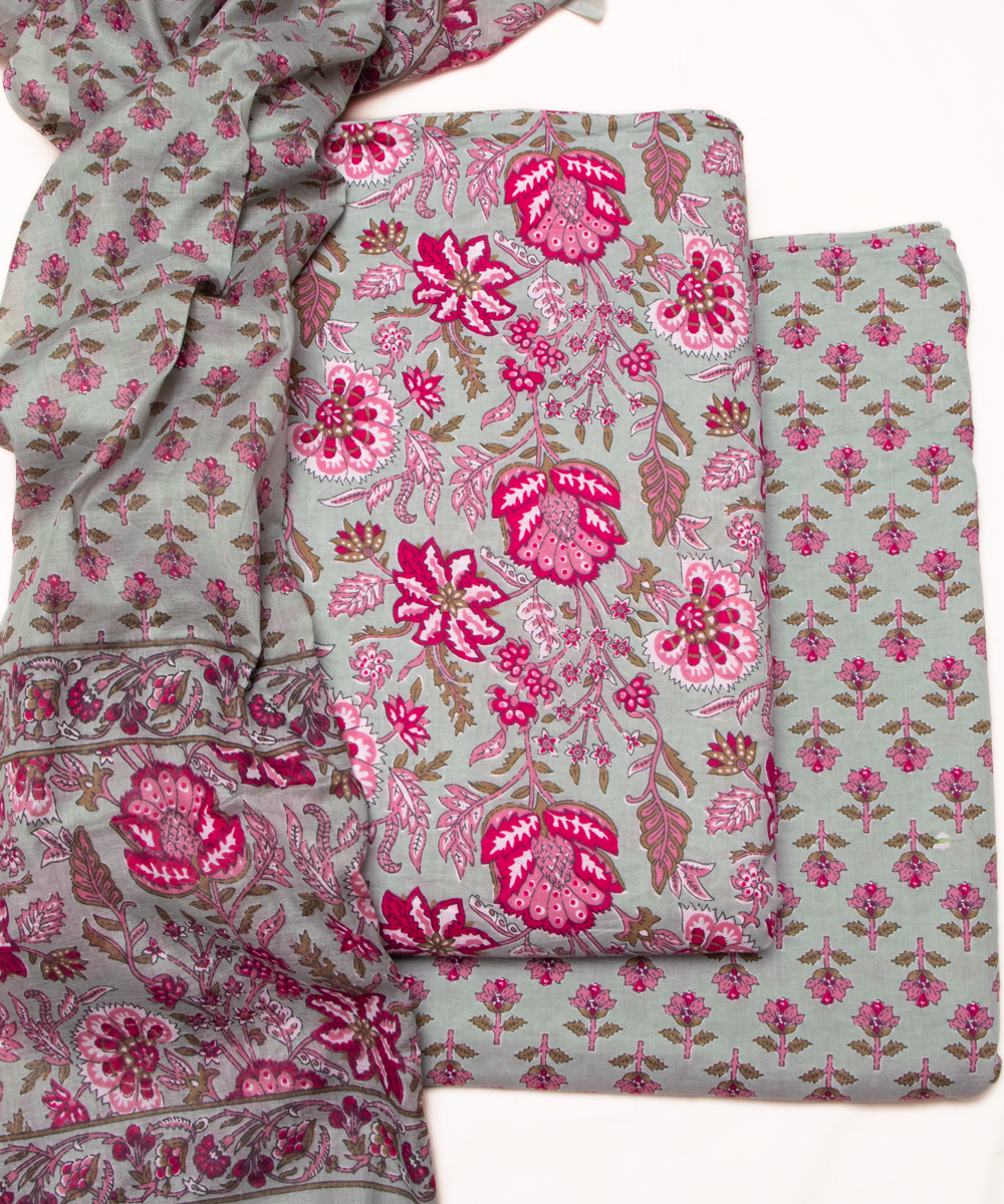 Sage Green Printed Cotton Suit Set
