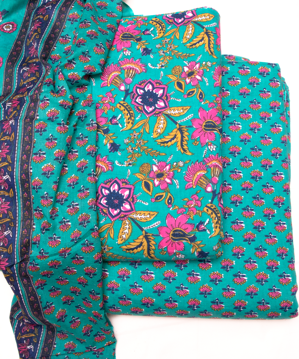 Sea Green Printed Cotton Suit Set