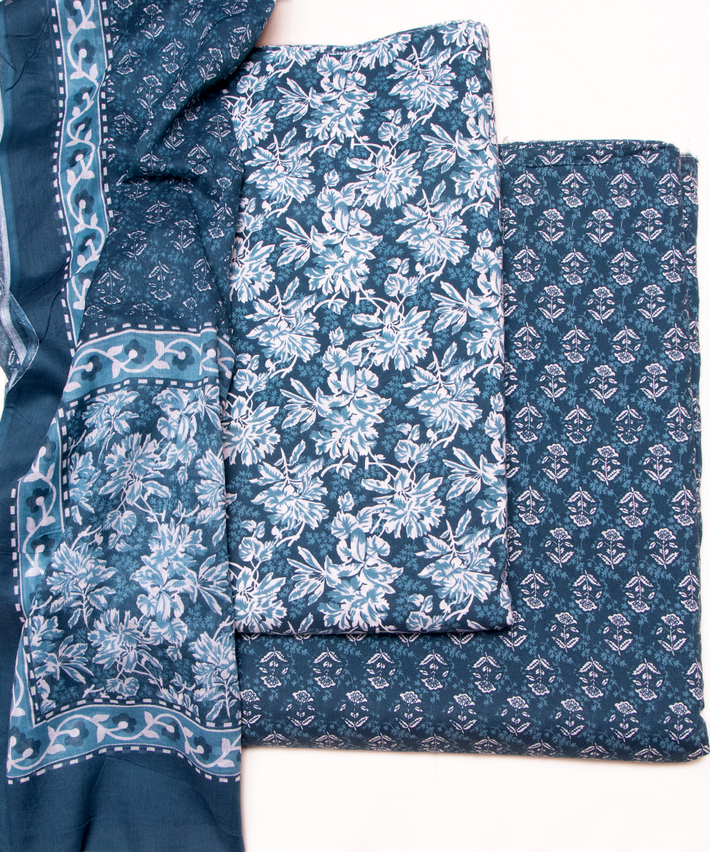 Teal Printed Cotton Suit Set
